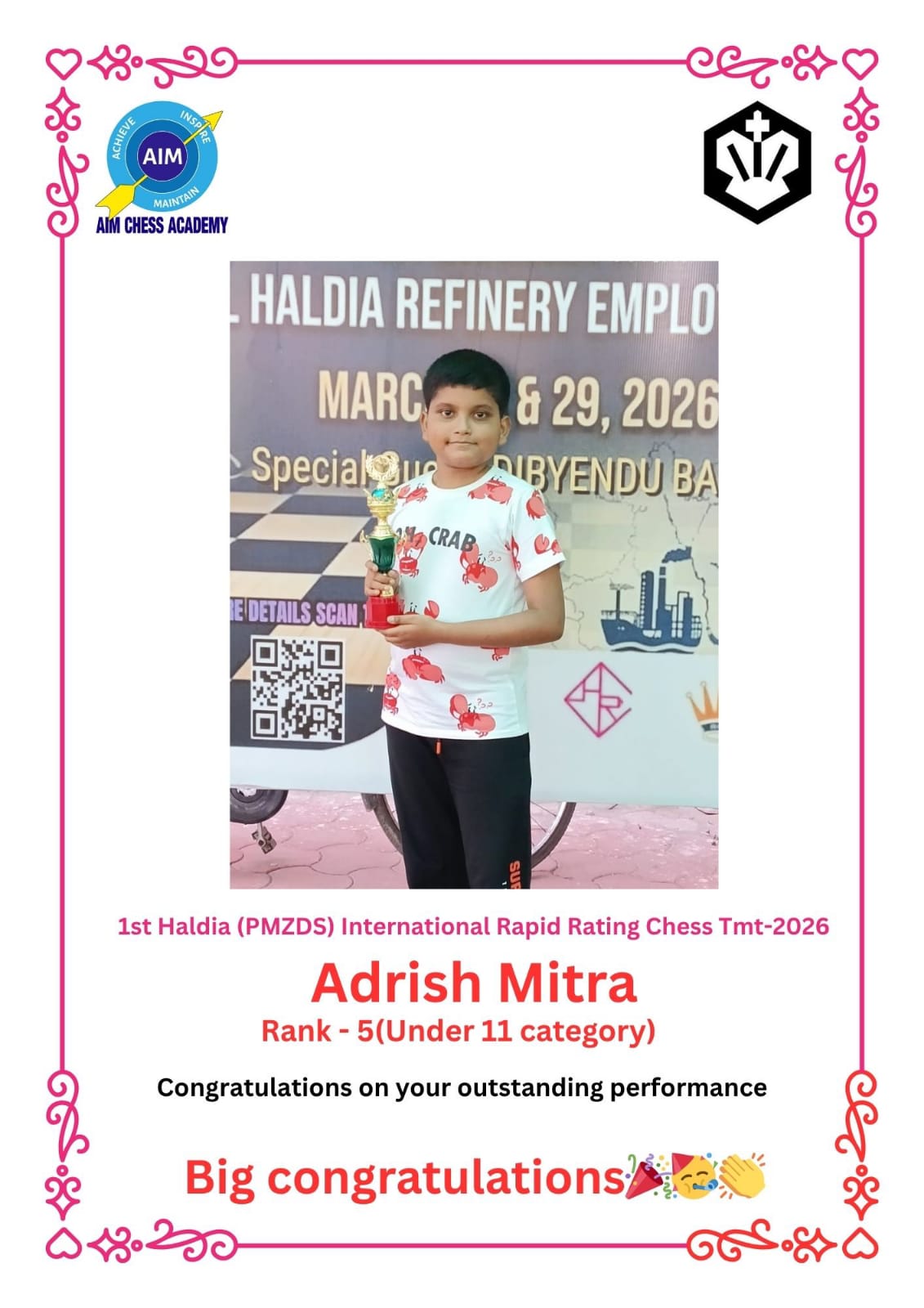 In 2024, AIM Chess Academy successfully organized three exciting Inter-Academy Tournaments, providing our students with valuable opportunities to compete, learn, and grow. We take immense pride in our students’ accomplishments, as over 20 of them secured prizes in prestigious chess tournaments held outside the academy. These achievements highlight their dedication, strategic thinking, and the effectiveness of our training programs.